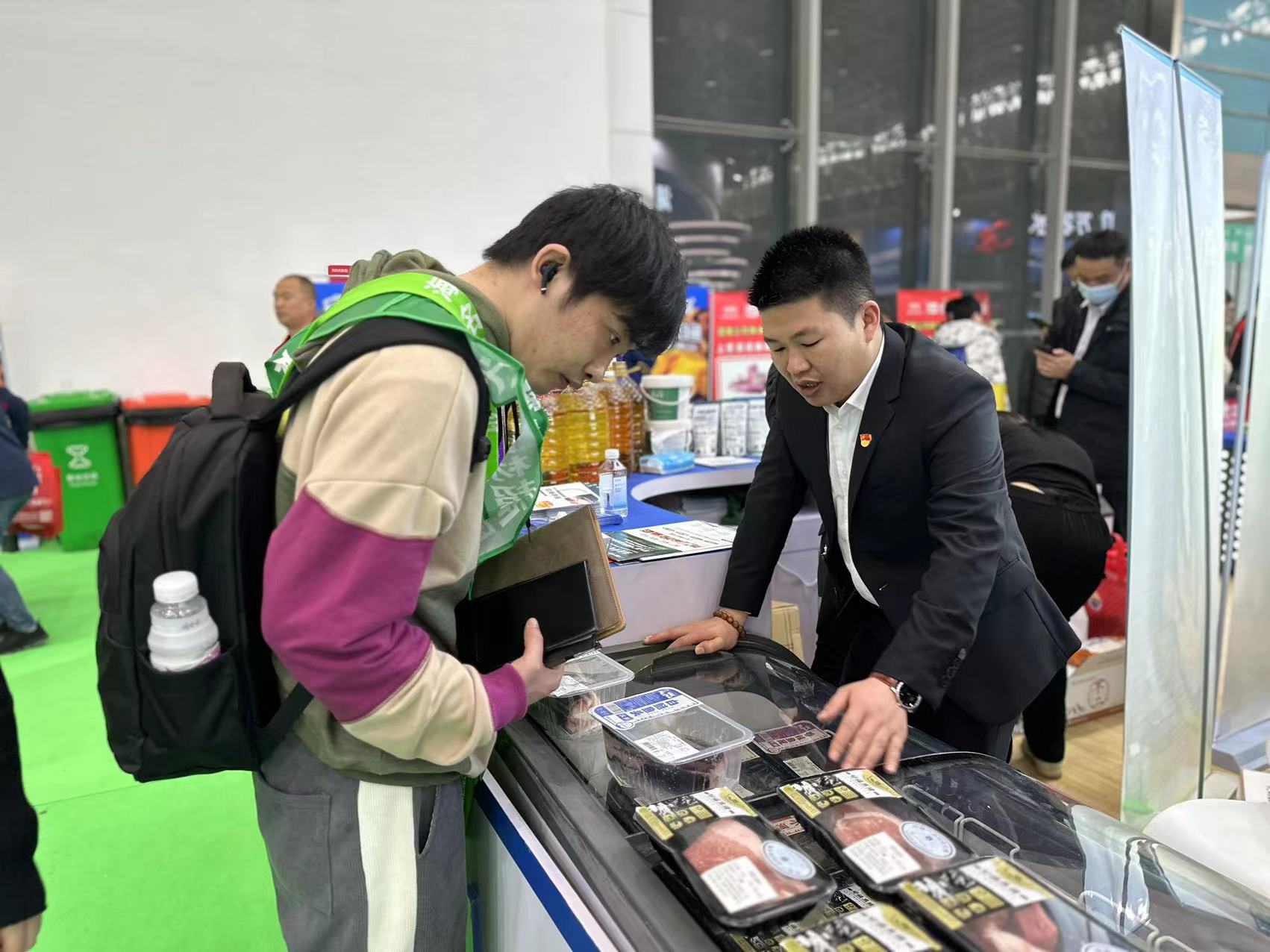 活動現場,黨員們作為推廣員參加2023年第十一屆中國食材電商節,向客戶推薦十種集團旗下好福牌產品,其中蛋品、水產和黑豬肉特別受客戶的青睞。為讓客戶切實體驗到產品美味,黨員們現場架起爐灶,做起涼拌皮蛋、烤五花肉等菜品吸引客戶,消費者絡繹不絕,通過試吃品鑒、業務洽談、產品展示等多元化的區域設置,為客戶帶來了一場視覺、嗅覺、味覺的全方位沉浸式體驗。