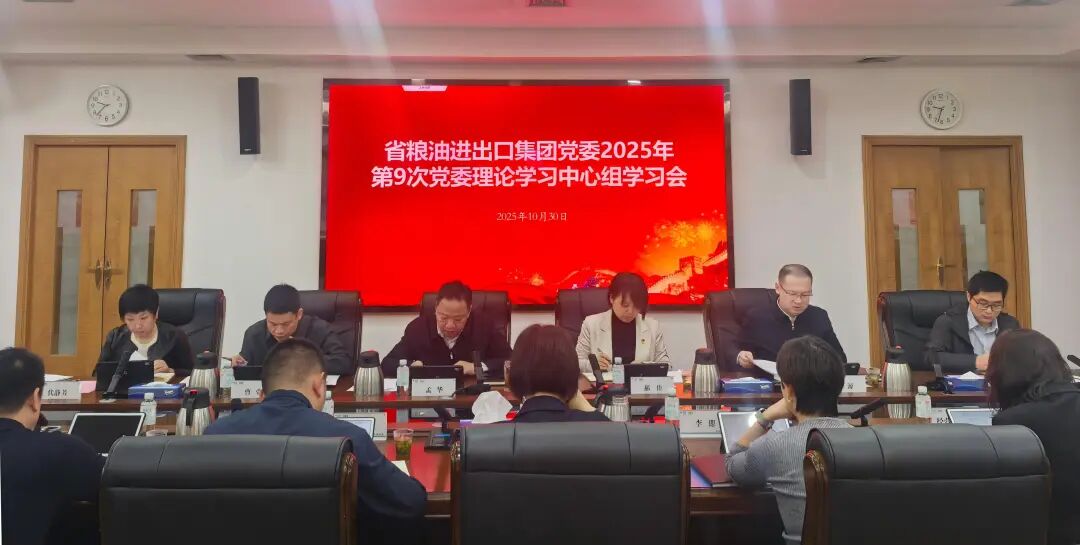 10月30日,省糧油進出口集團召開2025年第9次黨委理論學習中心組學習會,集團黨委書記、董事長孟華主持會議并講話。集團黨委班子成員、高管,各部室負責人參加會議。