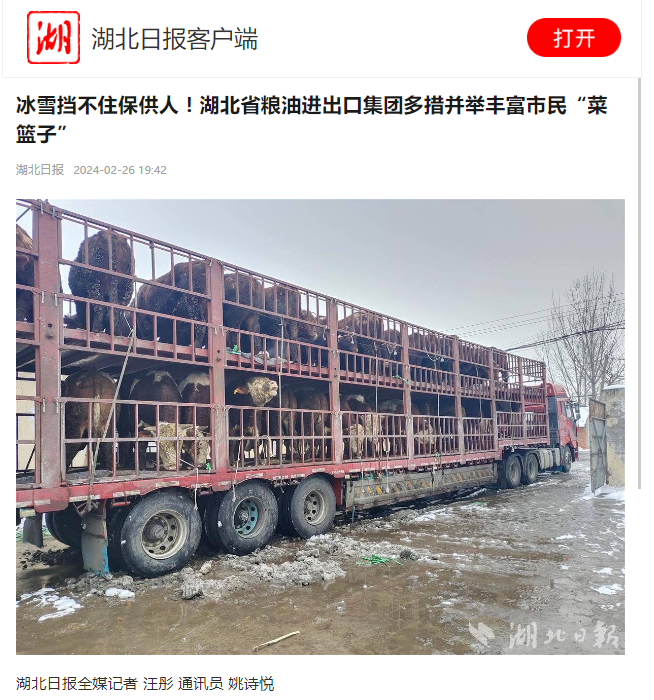 湖北日報:冰雪擋不住保供人!湖北省糧油進出口集團多措并舉豐富市民“菜籃子”