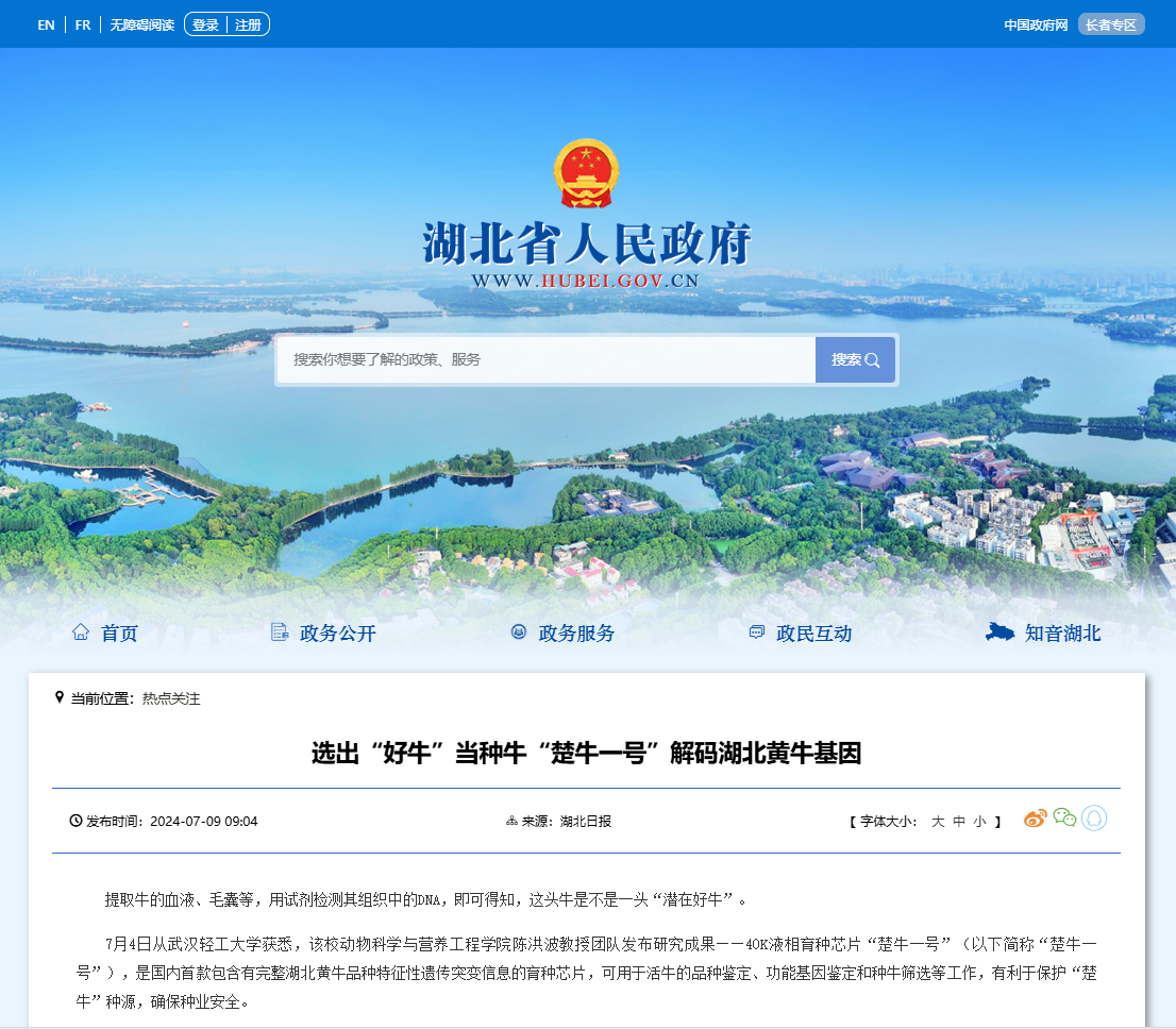 湖北省人民政府:選出“好牛”當種牛“楚牛一號”解碼湖北黃牛基因