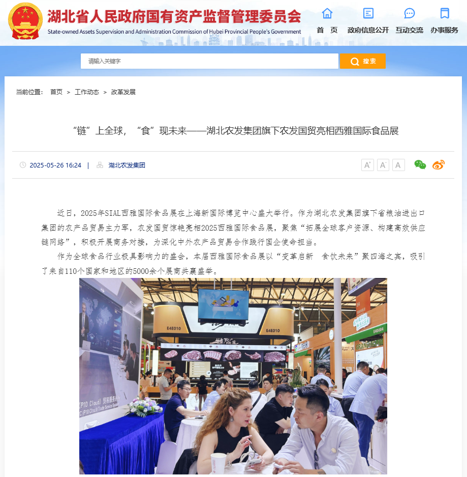 湖北省國資委:“鏈”上全球,“食”現未來——湖北農發集團旗下農發國貿亮相西雅國際食品展