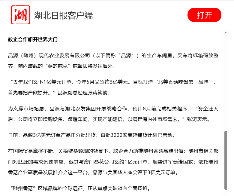 湖北日?qǐng)?bào):不懼硝煙練內(nèi)功 “隨州香菇”走進(jìn)全球60多個(gè)國家和地區(qū)